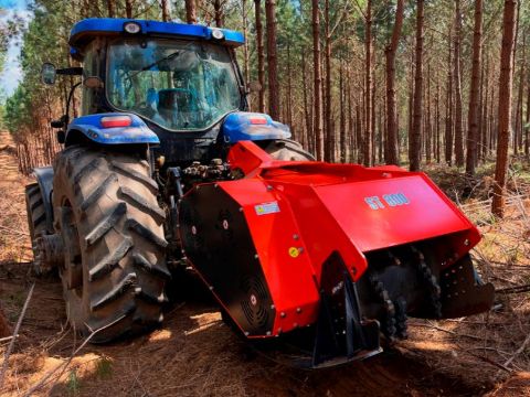 Tritura vegetação de até 15cm de diâmetro de tronco. Ideal para limpeza de áreas, renovação de cultura e substituição de queimadas.